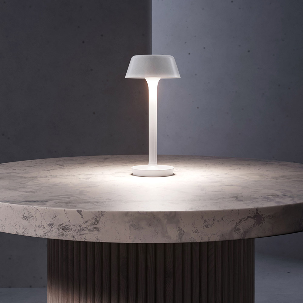 Table lighting fixture for indoor or outdoor spaces, with direct light emission.