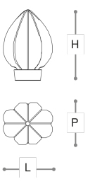 LA is a lamp where light and sound become one: its name in fact recalls the musical note LA, which the lamp reproduces when it is switched on. The lamp comes to life in a light gold metal cage inside which is a white glass bud made using the technique ‘cage blowing’.