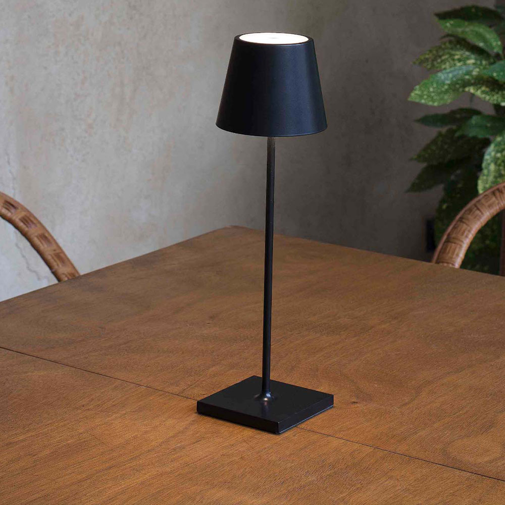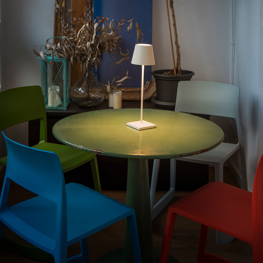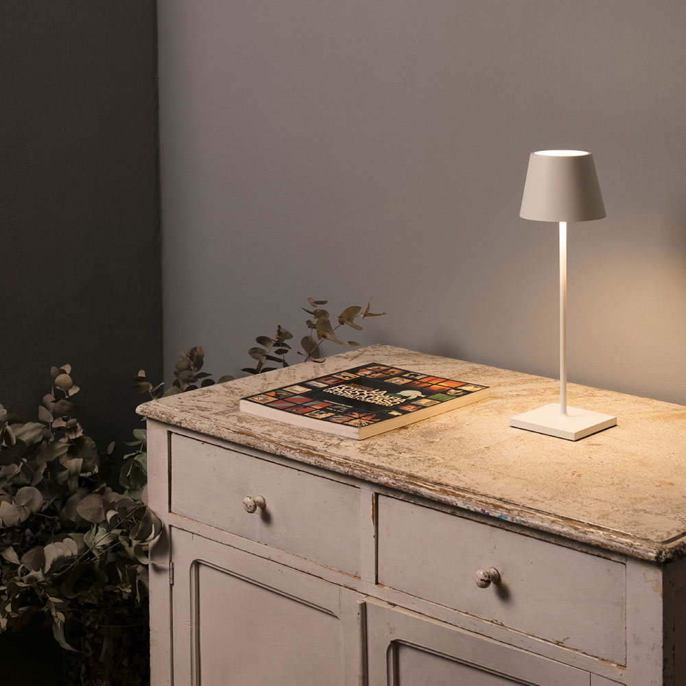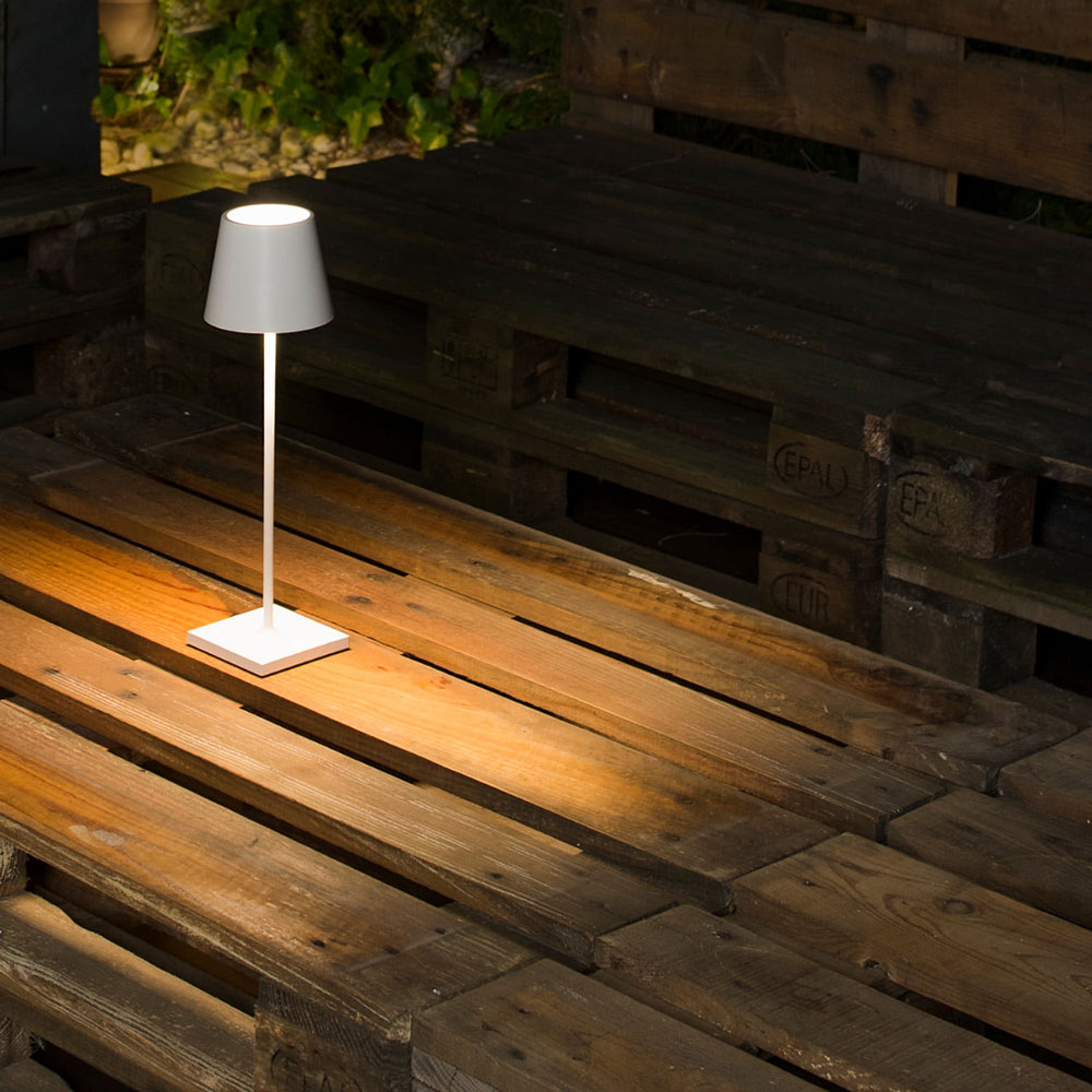 TOC 380 is a portable table lamp to illuminate gardens and terraces. It has a classic but renovated style. This original portable lamp has an easy ignition thanks to the Touch System.