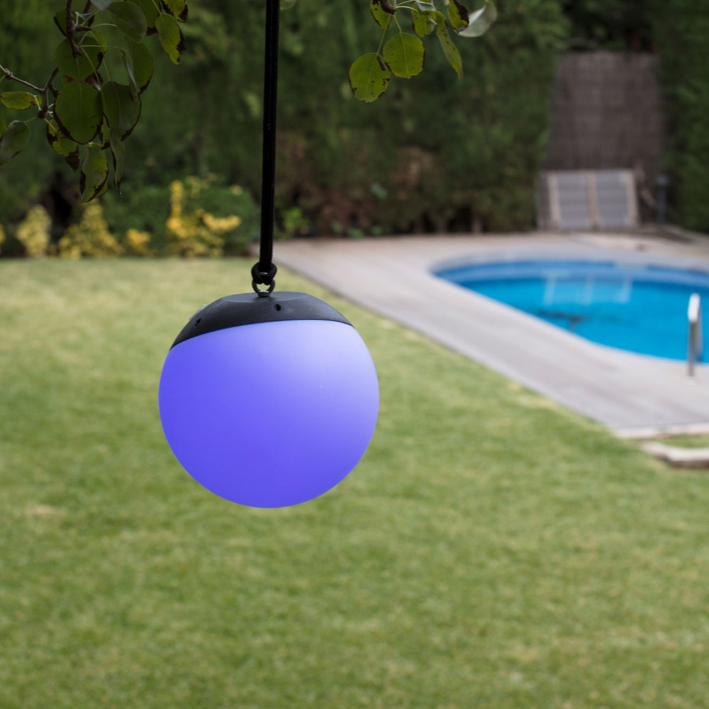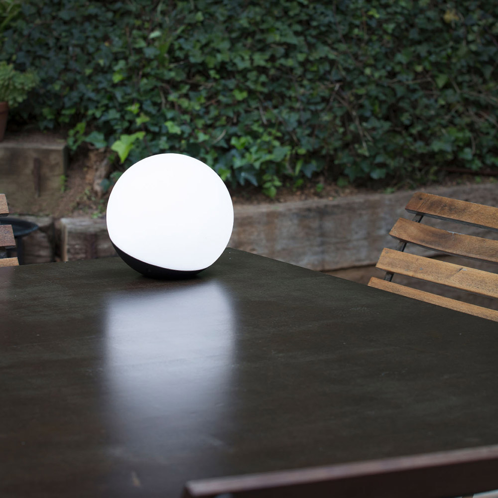 VOILA is a fun portable design for outdoor lighting. This light’s diffusor has a round shape and, thanks to different accessories, can be converted into a pendant lamp, table lamp or stake light. The colour of the light beam can also be changed and you can choose from white, blue, green or red. It is charged with a USB cable (included) and has 7 hours of autonomy. Complete charging is 10 hours. VOILA comes with a 53 mm long cord included.